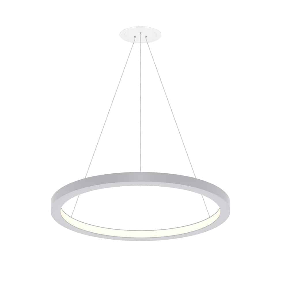 Circular LED ceiling light, for horizontal or vertical suspension with an extruded aluminium body with 35×35 mm, epoxy polyester powder coated. Available in 5 sizes (Ø650, 970, 1255, 1540 and 1955 mm), with bLINE diffuser, opal polycarbonate clip-in diffuser. With inward light. The standard version is 4000K LED, CRI>90, 60,000h lifetime (@L80, B10, Ta 25ºC) and without any visible power-supply cable. Ceiling rose available as recessed mounted with trim or trimless or surface mounted, in on/off, dimmable DALI or OmniaControl. 2700K, Tunable White and RGB White are available as options. Available in 16 different colours.