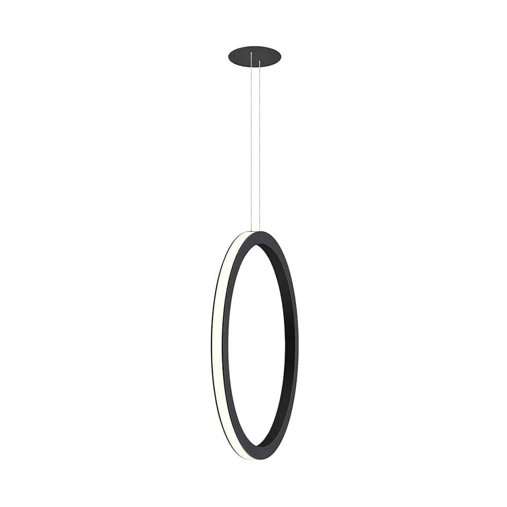 Circular LED luminaire, for vertical suspension. Extruded aluminium body with 35×35 mm, epoxy polyester powder-coated. Available in 5 sizes (Ø630, 950, 1270, 1555 and 1970mm), with bLINE diffuser, opal polycarbonate clip-in diffuser. With outward light. Standard version in 4000K LED, CRI>90, 60.000h lifetime (@L80, B10, Ta 25ºC) and without any visible power-supply cable. Ceiling rose available as recessed mounted with trim or trimless, or surface mounted, in on/off, dimmable DALI or with OmniaControl. 2700K, Tunable White and RGB White available as options. Available in 16 different colours.