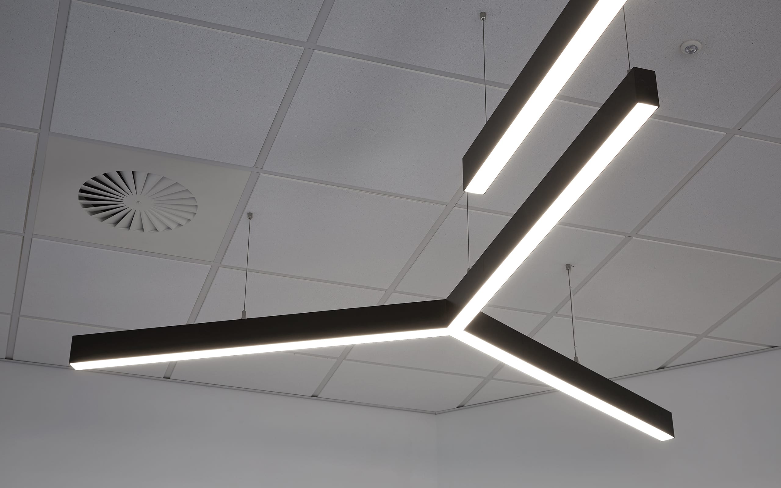 Following the company’s move into a larger industrial and office unit, Obex Protection wanted a space that would inspire employees and encourage best practices while offering the best service output to their valued customers. As part of the Category B fit-out, the Mount Lighting team supplied two Y-shaped M-Line luminaires to the boardroom. For most companies, the boardroom is at the heart of business relationships and making an impression with your lighting can invigorate conferences and build confidence during meetings.